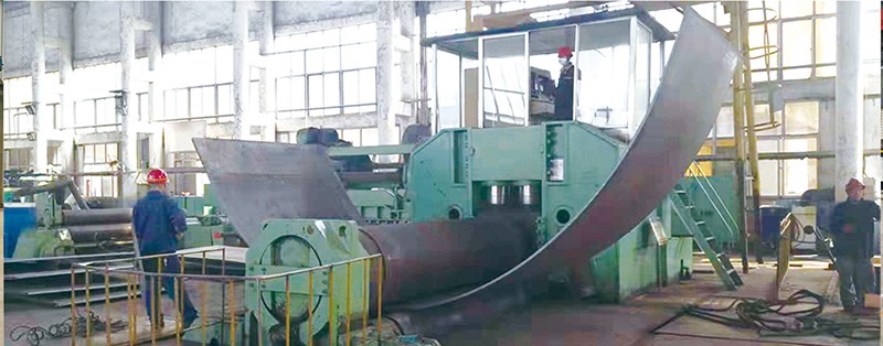 簡析卷板機的工作原理及應用范圍卷板機是對板料進行連續(xù)點彎曲的塑形機床,具有卷制O 同的形狀卷板機規(guī)格平整的塑性金屬板通過卷板機的三根工作輥(二根下輥、一根上輥) 之間,借助上輥的下壓及下輥的旋轉運動,使金屬板經過多道次連續(xù)彎曲(內層 壓縮變形,中層不變,外層拉伸變形),產生塑性變形,卷制成所需要 的圓筒、錐筒或它們的一部分。 卷板機的工作原理是卷板機上輥在兩下輥中央對稱位置通過液壓缸內的液壓油作用于活塞作垂直升降運動,通過主減速機的末級齒輪帶動兩下輥齒輪嚙合作旋轉 運動,為卷制板材提供扭矩。借助上輥的下壓及下輥的旋轉運動,使金屬板經過 多道次連續(xù)彎曲,產生塑性變形,卷制成所需要的園筒、錐筒或它們的一部分。